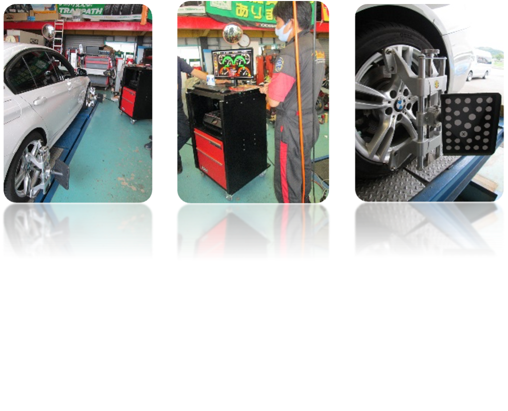 中でも一人ひとり異なった愛車に対する拘りのある顧客のニーズにマッチングした整備・セッティング施工を心掛け、他社に先駆けて、大口径SUVホイール交換可能なイタリア製スポーツタイヤチェンジャー、当時米国NASAに導入されていたというドイツ製のダイナミックバランサー、先進技術であったイタリア製CCD測定アライメントテスター、そして、車両製作や理想的な車両重量バランスの設定には欠かせられない車両軸重1)を計測するコーナーウエイトゲージを導入した。測定ゲージ導入間もない頃には、警察車両であるパトカーの装備品積載配置検討のデータとして測定協力に携わった実績もある。このように、県内では数社のみが行っている独創的なサービスを提供してきた。